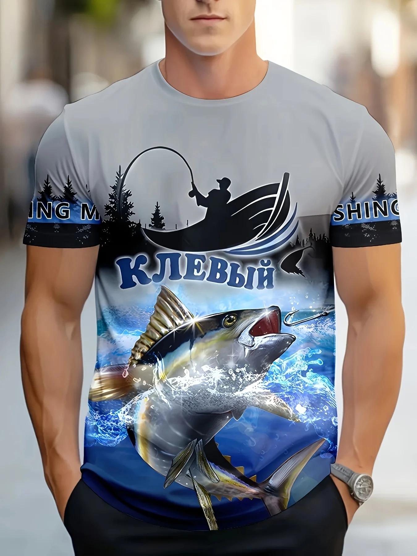 Men's Fishing Shirt Summer T Shirt Short Sleeve Tee Top Men T-Shirt Harajuku Casual T Shirt Men Round Neck Tops Fishing T-Shirts